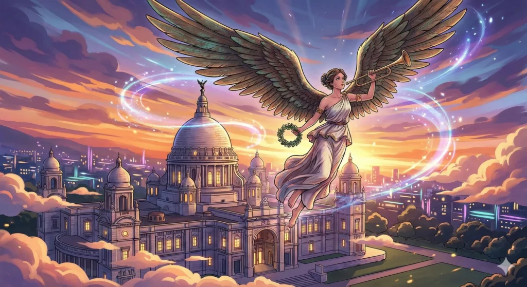 ভিক্টোরিয়া মেমোরিয়াল–এর চূড়ায় কালো ব্রোঞ্জের তৈরি “ভিক্টোরিয়ার পরী” (Victory Angel) বা “এঞ্জেল অফ ভিক্টরি” দাঁড়িয়ে আছে কলকাতার চিরকালীন ইতিহাসের সাক্ষী হিসেবে।